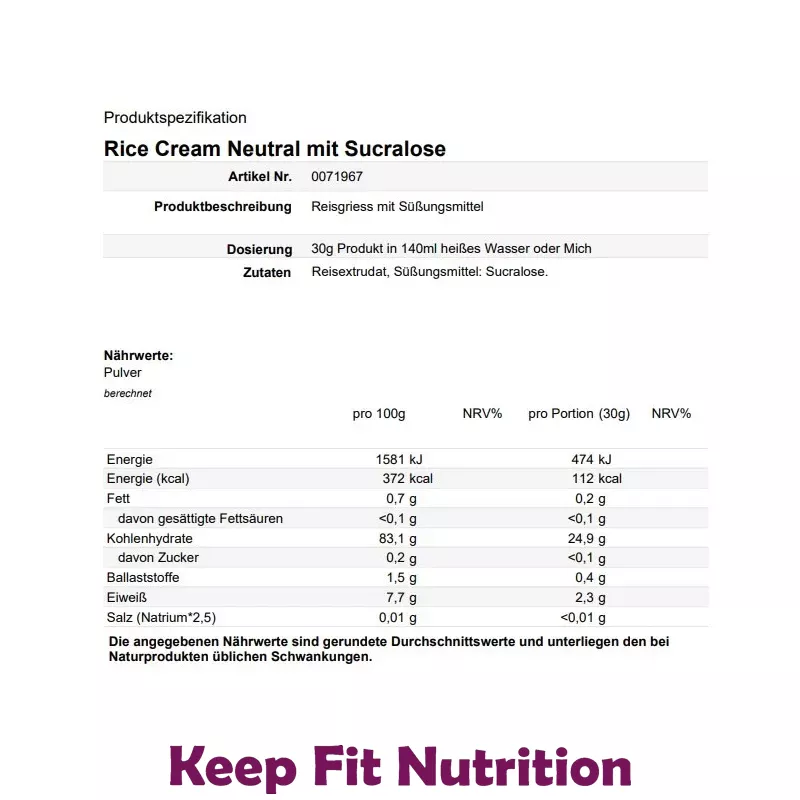 Die Rice Cream von Keep Fit Nutrition.