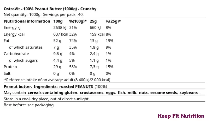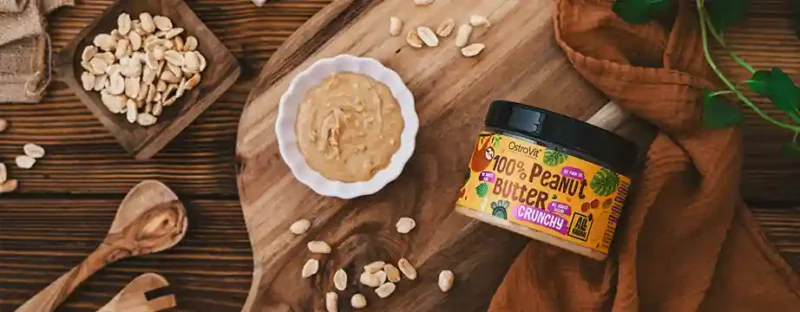 Le beurre de cacahuète 100 % OstroVit est 100 % fabriqué à partir de cacahuètes. Il est sans sel, sans sucre et sans huile de palme. Les cacahuètes, aussi appelées noix de terre, se distinguent des autres noix par leur teneur en protéines la plus élevée. Tous les produits OstroVit sont synonymes de qualité et d’un souci du détail irréprochable. Après broyage, les produits sont conservés à basse température, ce qui leur permet de conserver les acides gras essentiels oméga 3, 6 et 9.