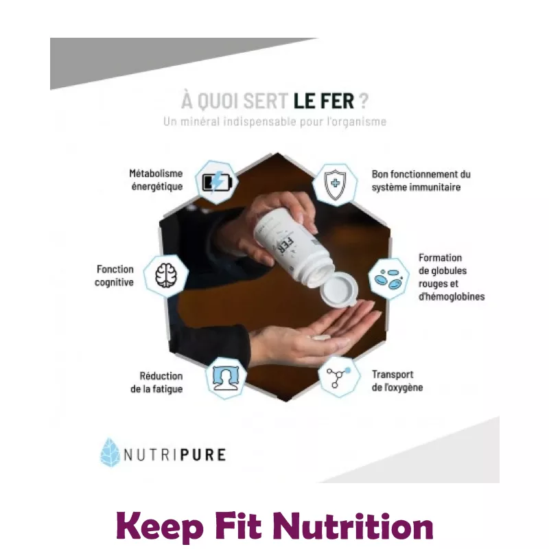 Contrairement à la majorité des compléments alimentaires en fer de qualité aléatoire, la molécule de fer de chez Nutripure est protégée par 2 acides aminés de glycine *bisglycinate », le bisglycinate de fer résiste à l’acidité de l’estomac et est nettement mieux absorbé par la barrière intestinale. Si ce n’était pas le cas, il serait évacué par le système digestif pouvant entraîner des selles noirs et des diarrhées.