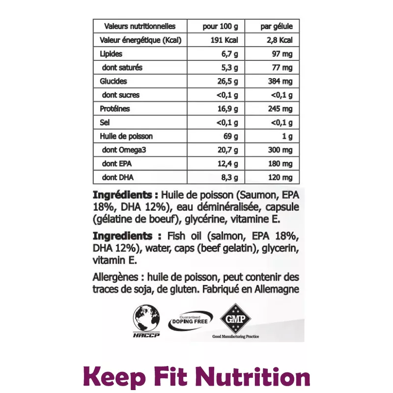 Keep Fit Nutrition vous présente Omega 3, huile de poisson spécifique *saumon* 2000mg, un puissant allié pour la santé.