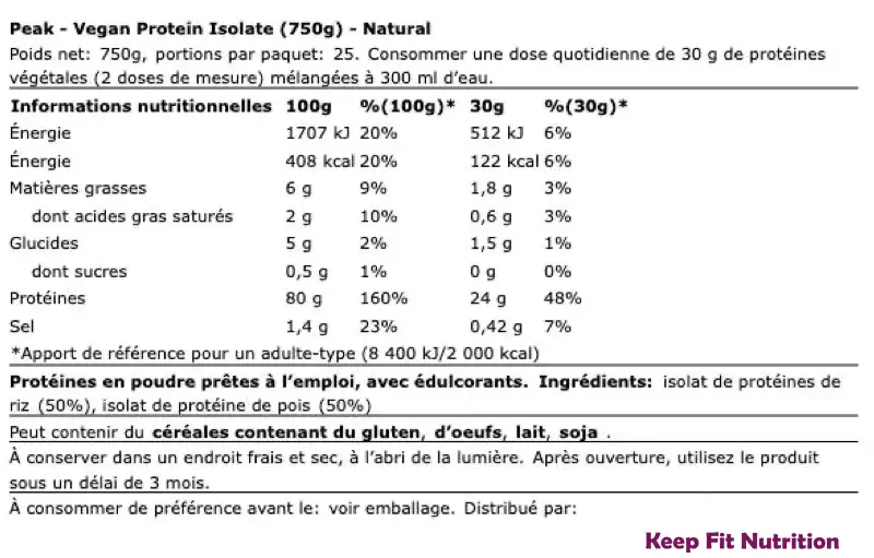 Délayer 30g *2 mesurettes* de protéine végan isolate 1 à 2x/ jour dans 2dl d’eau où votre lait végétal favoris au petit déjeuner où / et immédiatement après votre activité sportive.