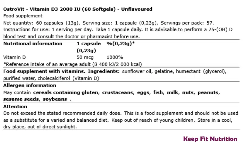 Outre le cholécalciférol, la préparation OstroVit contient également de l’huile de carthame, un ingrédient qui peut influencer positivement l’absorption et l’assimilation du principe actif, garantissant ainsi une supplémentation efficace.
