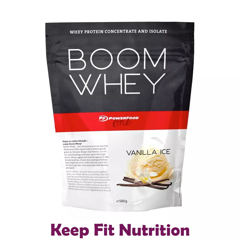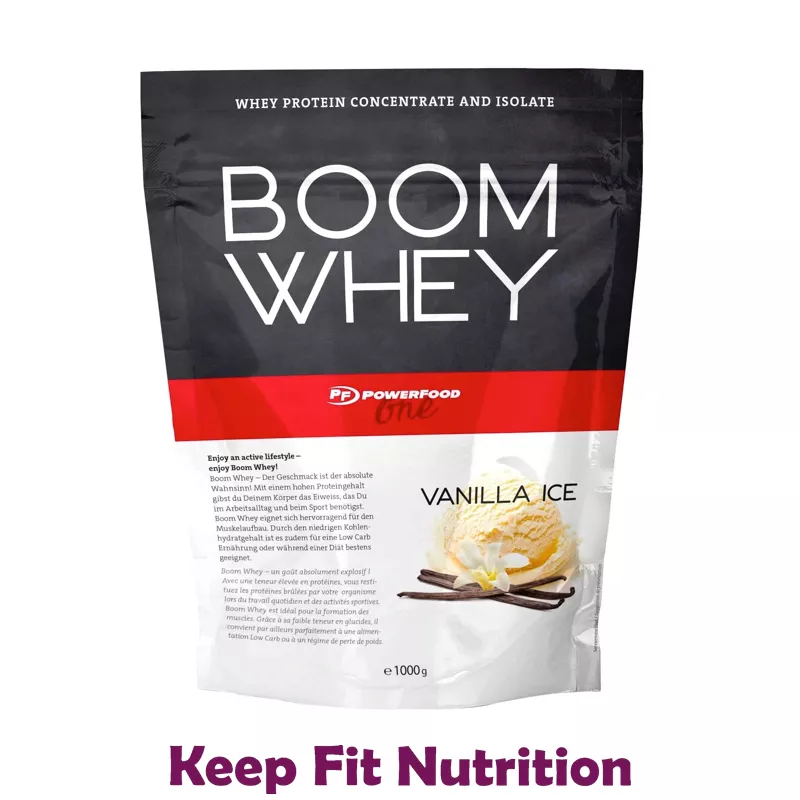 Boom Whey; un goût explosif. Grâce à sa faible teneur en glucides *1.5% par portion*, elle convient parfaitement à une alimentation Low Carb *faible en glucides* ou à un régime perte de poids.
